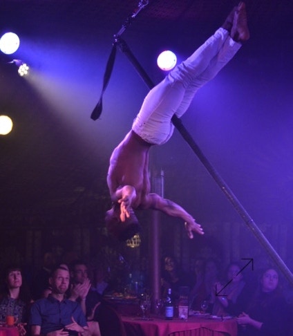 Showman uses unbelievable acrobatic balancing skills stacking up to six ordinary household chairs, and performs different acrobatic positions on top of them. He stacks and climbs these chairs using grace and athleticism that can only be found in the highest levels of acrobatics. Showman has astounded audiences all around the world with his signature cirque style chair hand balancing act, six meters above the audience.